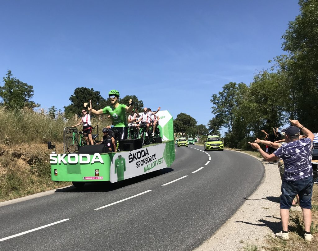 As always the sponsor “Caravane” is the intro to the day’s stage, with loud music and colourful floats they stream down the road chucking out goodies from flags to washing powder! Great excitement amongst the little kids (and the not so little) as everyone scrambles to catch a spotted cap or a packet of biscuits😊